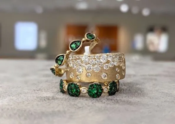 This is a rather new trend and we’re definitely here for it! Asymmetrical and scattered diamond pieces are unique. This jewelry trend consists of a fun and free-flowing styles!