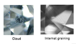 A diamond is formed in nature and it is possible for there to be naturally occurring internal characteristics or inclusions in the gem. They are not easy to see in all diamonds, but some have inclusions visible with the unaided eye (internal flaws pictured below).